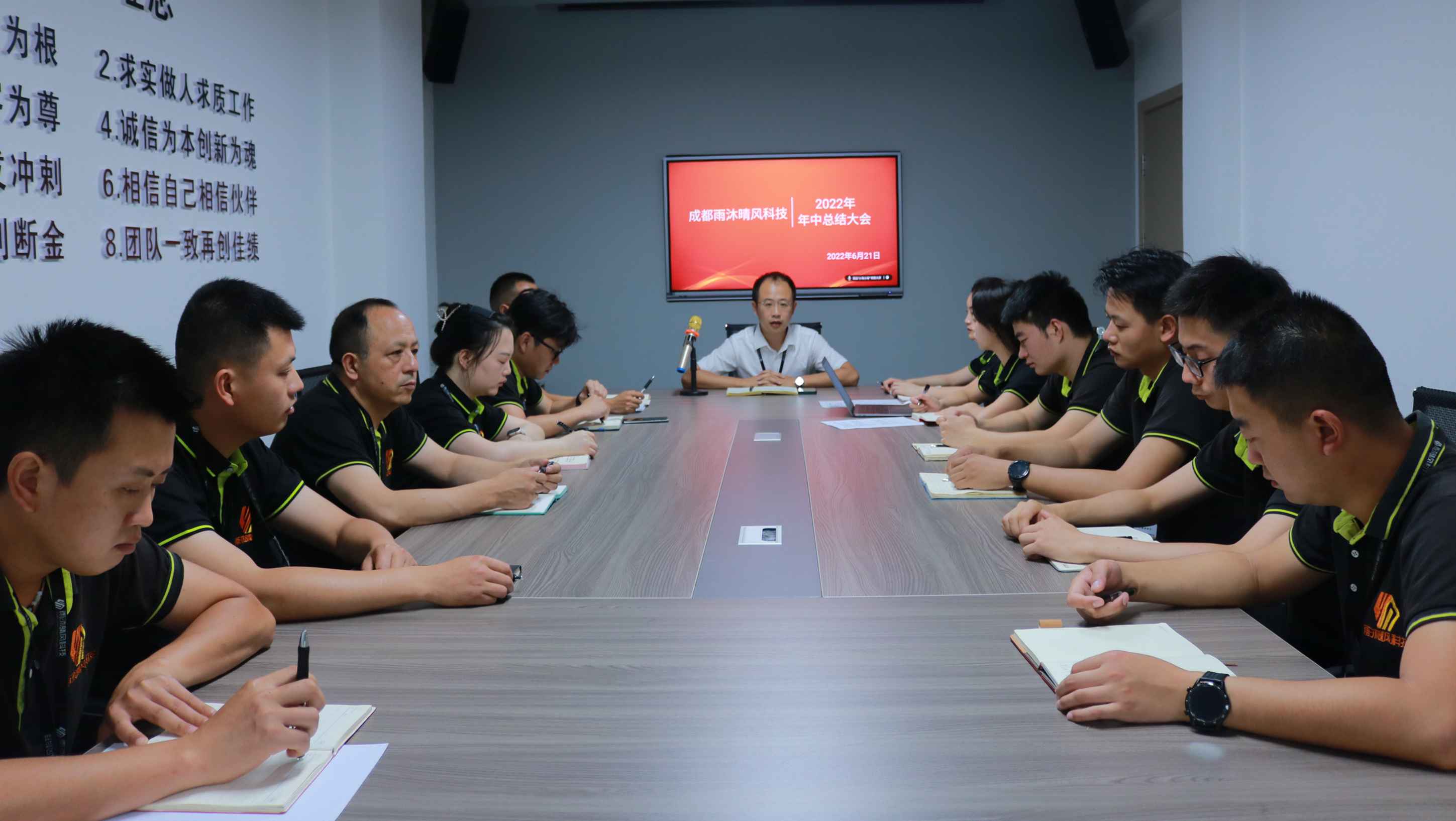 新春將至,雨沐晴風科技 2025 年終總結會順利召開。全體員工齊聚一堂,回顧年度發展成果、復盤經營工作,明確 2026 年發展方向,為新一年發展凝心聚力。 會上,首先開展年度經營數據復盤工作,財務部劉總對公司全年營收、成本、利潤等關鍵經營指標作詳細匯報,以數據為公司戰略規劃提供堅實支撐。 各部門依次作年度工作總結,副總李祝軍、項目經理唐維及項目部、業務部、行政部等各部門同事,分別分享了 2025 年工作成果、經驗心得,并明確了 2026 年工作規劃,各部門的深耕細作與通力協作,盡顯公司團隊的凝聚力與戰斗力。 李總在會上發表年度總結講話,解讀公司 2025 年整體經營情況,深入分析市場機遇與挑戰,為公司 2026 年發展擘畫清晰藍圖,為全體員工注入奮進動力。會議還設置了新春紅包派送環節,李總為大家送上新年祝福,現場洋溢著溫馨的節日氛圍。 此次年終總結會,既是對 2025 年工作的全面復盤,更是對 2026 年工作的動員部署。新的一年,雨沐晴風科技全體員工將以此次會議為起點,凝心聚力、開拓創新,以全新姿態迎接新挑戰、搶抓新機遇,攜手書寫公司發展新篇章。值此新春佳節來臨之際,公司也提前祝愿全體員工新春快樂、闔家幸福、萬事順意!